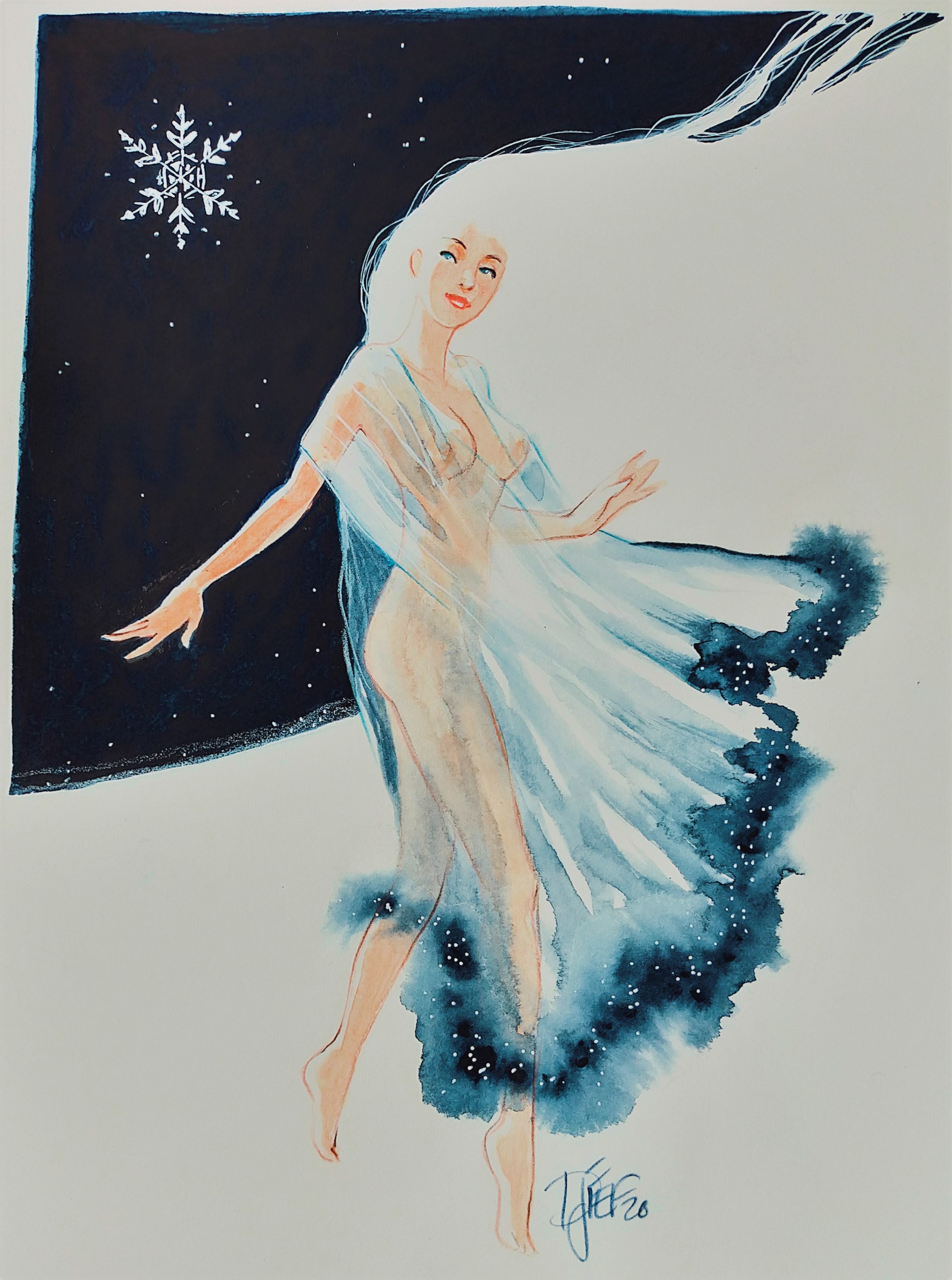 Dessin Pinup Noël aux feutres et crayons de couleurs , Her cultural background is santee oglala sioux.